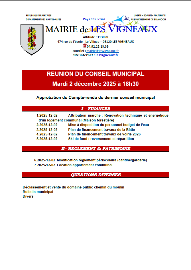 • Convocation Conseil Municipal du 2 Décembre 2025