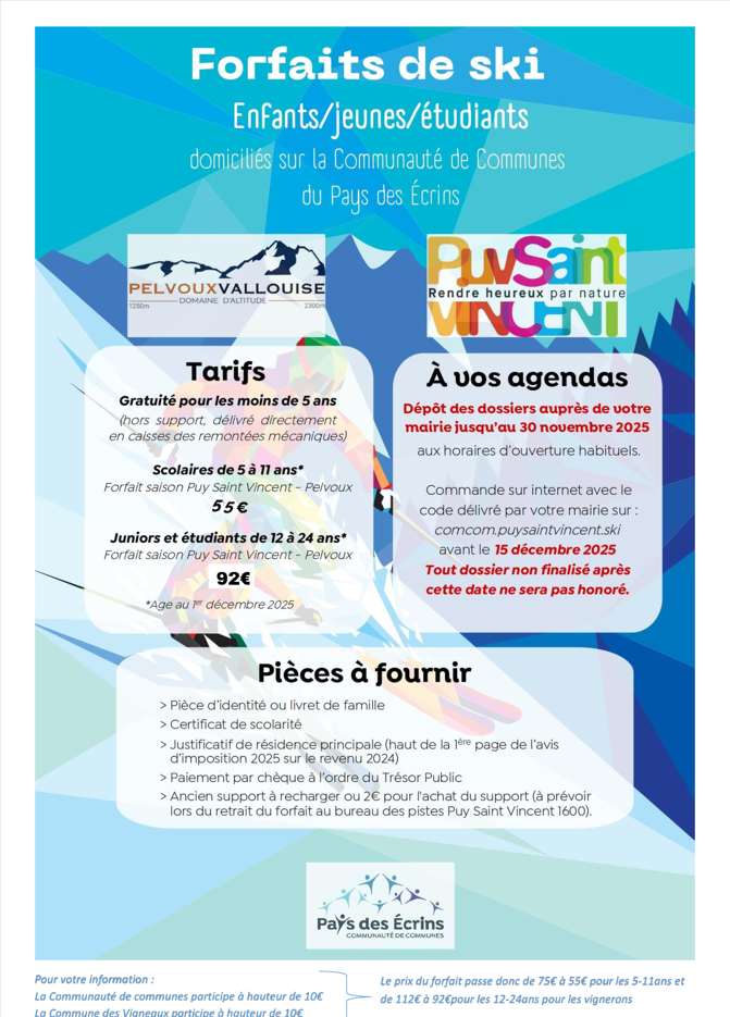 Forfaits de Ski 2025/2026 – Enfants/Jeunes/Etudiants